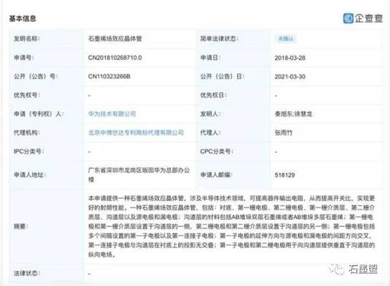 华为公开“石墨烯场效应晶体管”专利,涉半导体领域